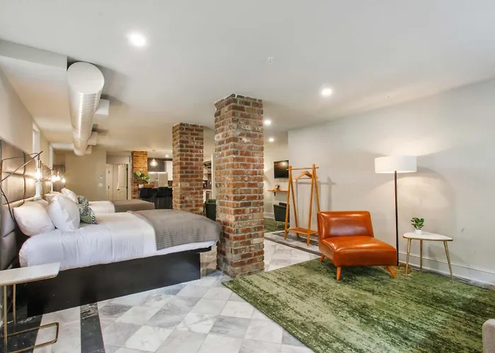 Situated nearly 5 minutes' walk from Greene Square, the 1-bedroom King And Queen Suite 1St Floor Sleeps 6 Savannah villa offers easy access to numerous tourist spots in the area. Located just near the historic Colonial Park Cemetery, this Savannah holiday home boasts a patio with views of the city.